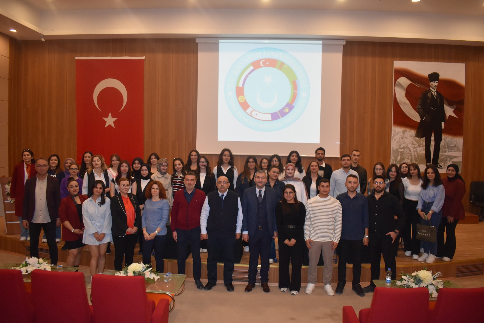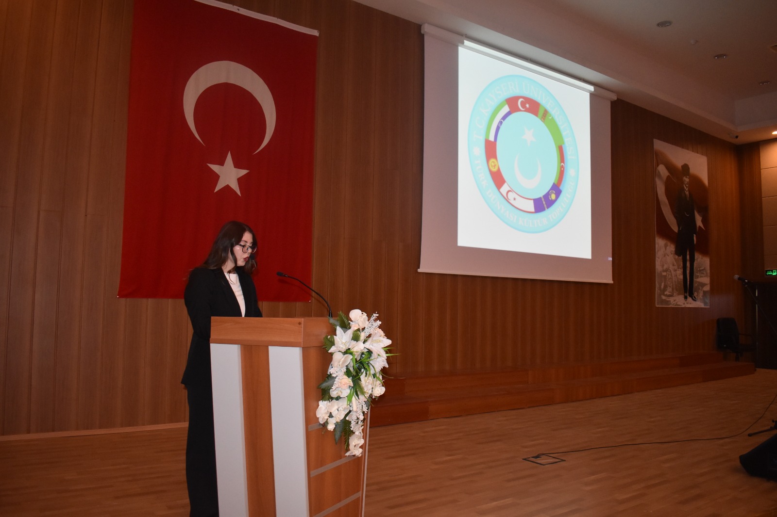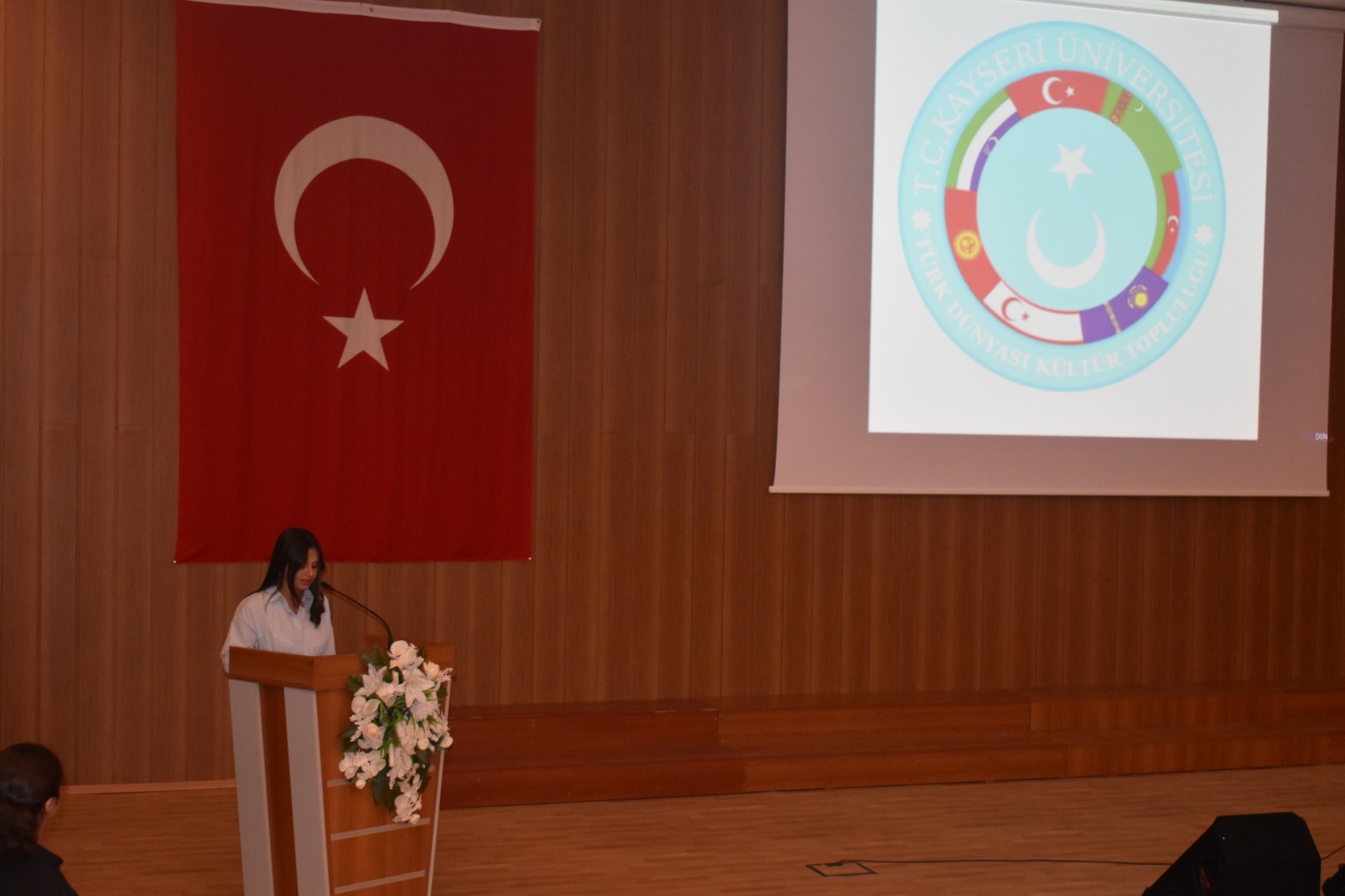 Students from the Department of Turkish Language and Literature at the Faculty of Social and Human Sciences at Kayseri University, along with the Turkish World Culture Society led by these students, held a ceremony to celebrate Republic Day on October 29 at the M. Hidayet Tutum Congress and Culture Center on the Develi Seyrani Campus for faculty members and students. The ceremony concluded with poems, songs, and prayers for all our martyrs, especially Gazi Mustafa Kemal Atatürk.