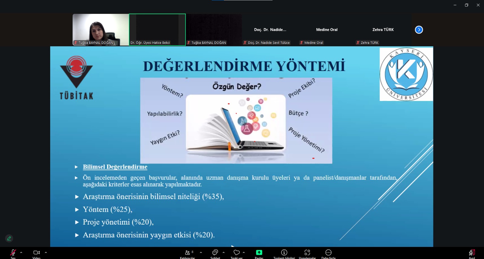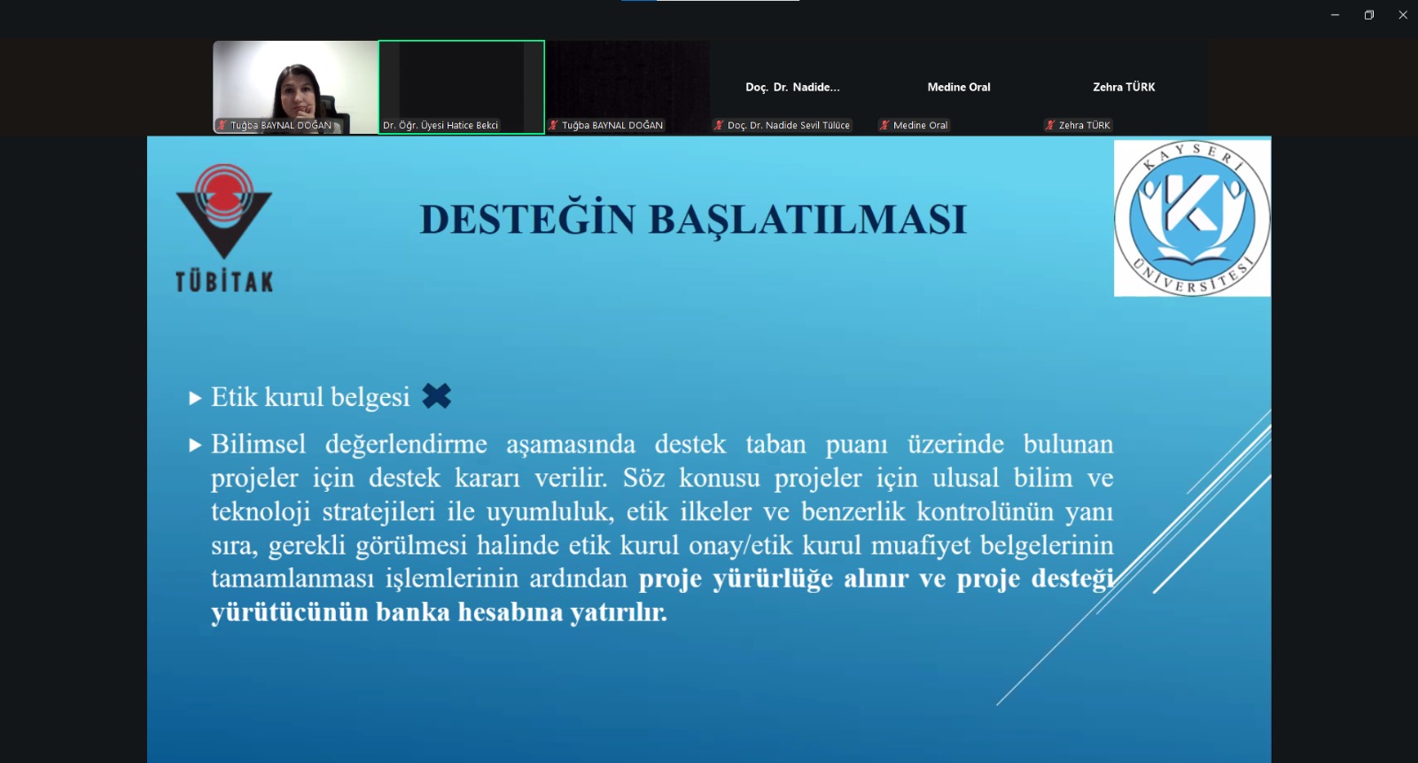 Öğrenci Projeleri Eğitimi kapsamında Dr. Öğr. Üyesi Hatice BEKÇİ tarafından Fakültemiz öğretim elemanları ve öğrencilere yönelik zoom üzerinden eğitim verilmiştir.