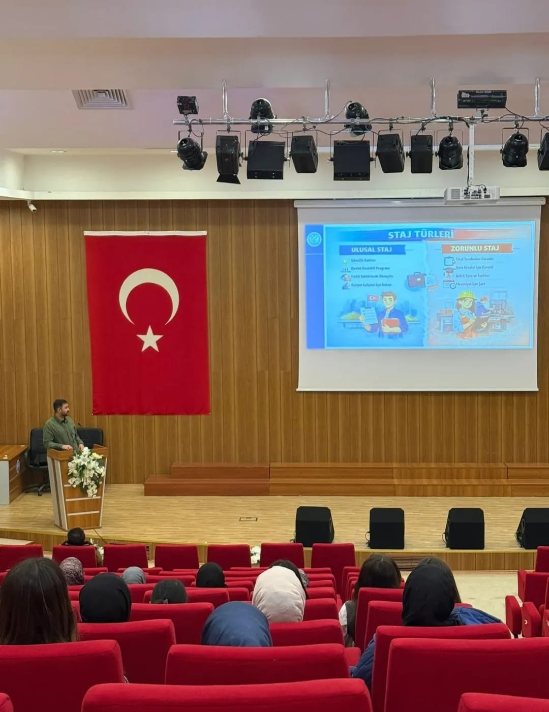 Fakültemiz öğrencilerine yönelik olarak, Çalışma ve Sosyal Güvenlik Bakanlığı destekleri ve Türkiye İş Kurumu (İŞKUR) koordinasyonunda yürütülen Ulusal Staj Programı 2026 Yılı Başvuruları kapsamında bilgilendirme eğitimi düzenlendi.